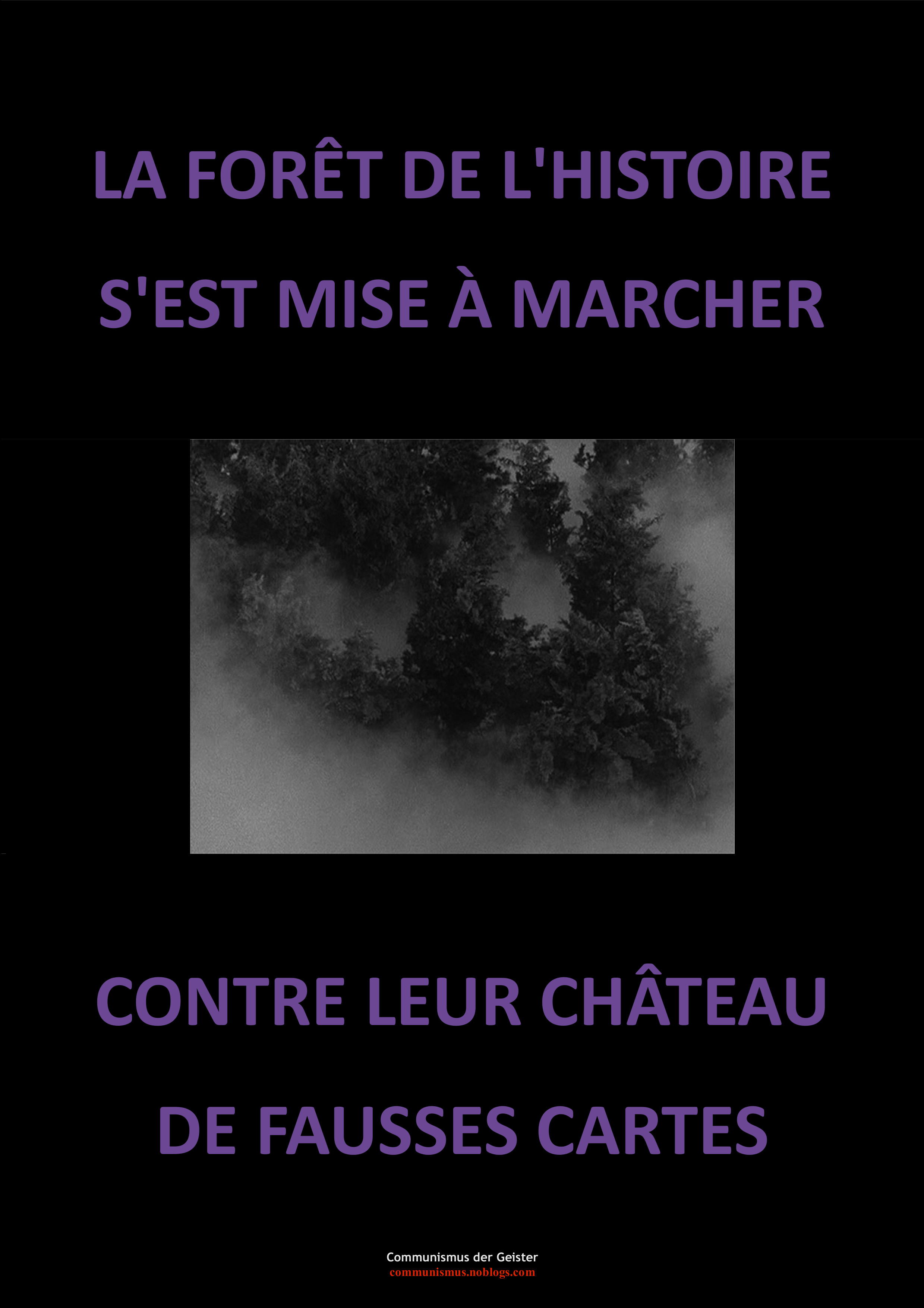 Un mouvement se définit négativement en fonction de ses limites. Son terrain d’action est aussi bien circonscrit par ce au-delà de quoi il ne veut pas aller. Sa finitude programmée le condamne à n’être que la conjuration hystérique d’une fin attendue. Sa vie elle-même n’est guidée que par la seule idée d’une fuite en avant toujours plus éperdue pour en retarder le dénouement, qui en était le moteur. C’est que sa fin est effrayante en ceci qu’elle n’est rien de moins que sa mort. Une temporalité séparée du cours de l’Histoire. Aussi n’a-t-elle pas vocation à durer. Elle est toujours à reprendre, laborieusement, depuis le début, à partir du même néant. Partant de là, nous ne pourrions que recommencer toujours, et n’apprendre jamais. Puisqu’il n’en reste rien. Fermer la parenthèse.