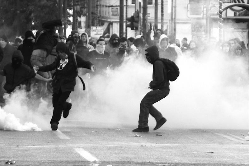 Plus tard, dans Exarchia, la fumée sans qu’on sache s’il s’agit des lacrymos ou des banques qui crament. Encore une nuit. Encore des feux et des pierres, des matraquages et des gaz, une ville qui n’en finit pas de se rencontrer à chaque carrefour, de virer les journalistes, de se trouver dans ces gens qui parlent de l’innommable et de la joie. Les keufs morflent sévère.